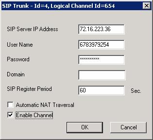 Trunk Configuration button. The SIP Trunk Configuration dialog box opens.